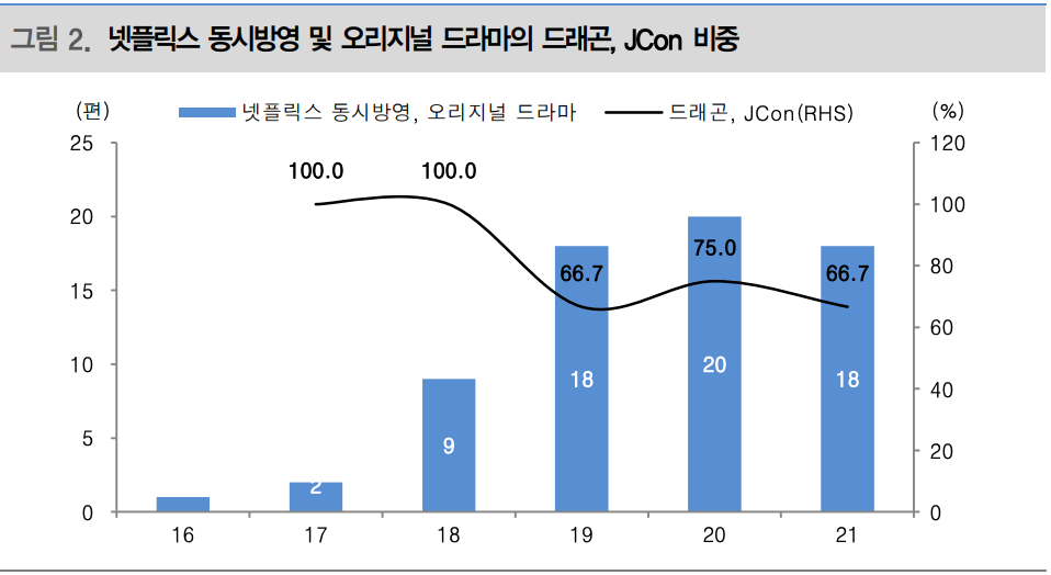 - 글로벌 최대 OTT기업인 넷플릭스와 드라마 공급계약을 체결한 바, 드라마 판권 판매 확대로 매출 성장에 기여할 것으로 기대됨