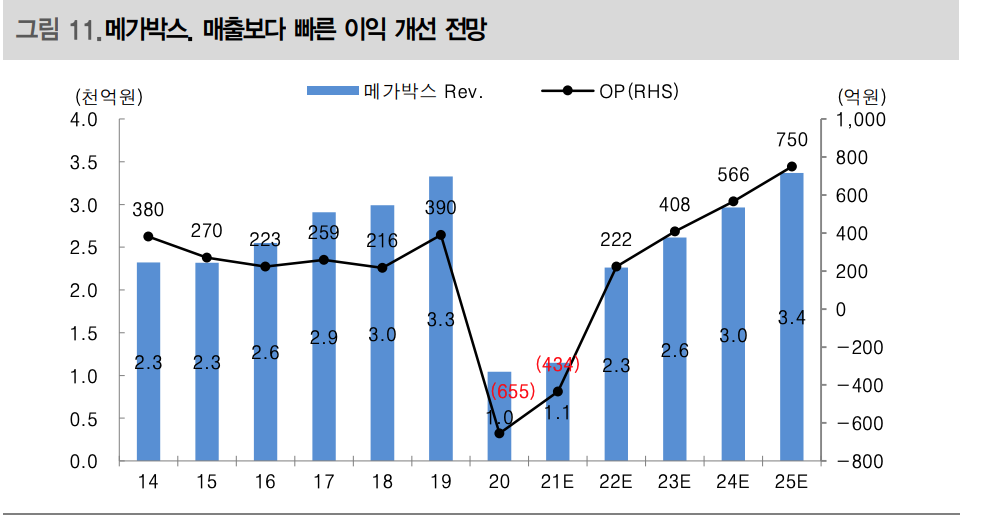 - 할리우드 기대작 개봉에 따른 메가박스의 관객수 회복과 함께 인간실격, 너를 닮은 사람, 구경이 등의 드라마 편성 및 OTT향 오리지날 드라마 편성 등으로 매출 성장 전망.