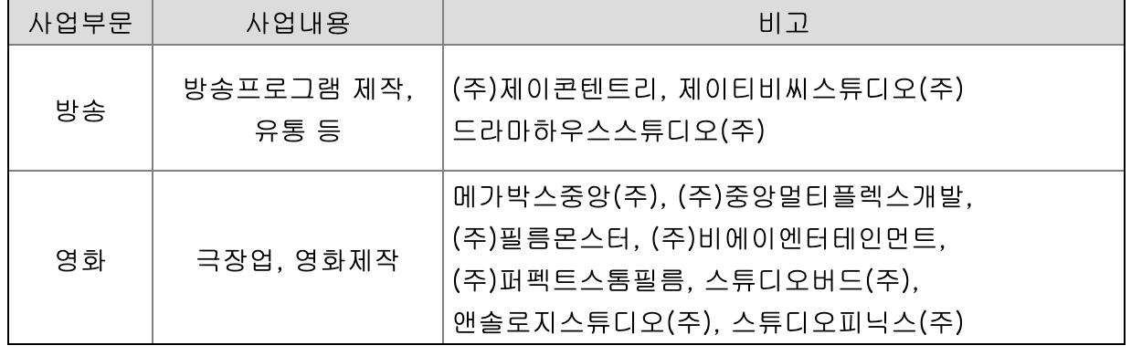 - 매거진 발행을 주요 사업으로 하고 있으며, 자회사를 통해 멀티플렉스 극장 운영, 드라마 제작 및 콘텐츠 유통, 케이블 채널 운영, 문화사업 등을 영위하고 있음.