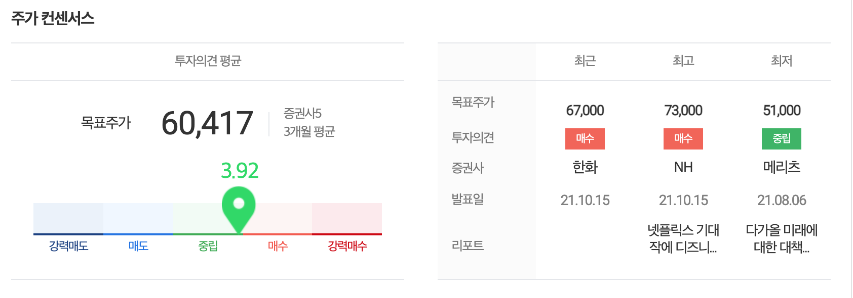 제이콘텐트리에 주식에 목표주가를 제시한 애널리스트들 중 최고가는 73,000원이고 최저가는 51,000원 평균가는 60,417원이다.