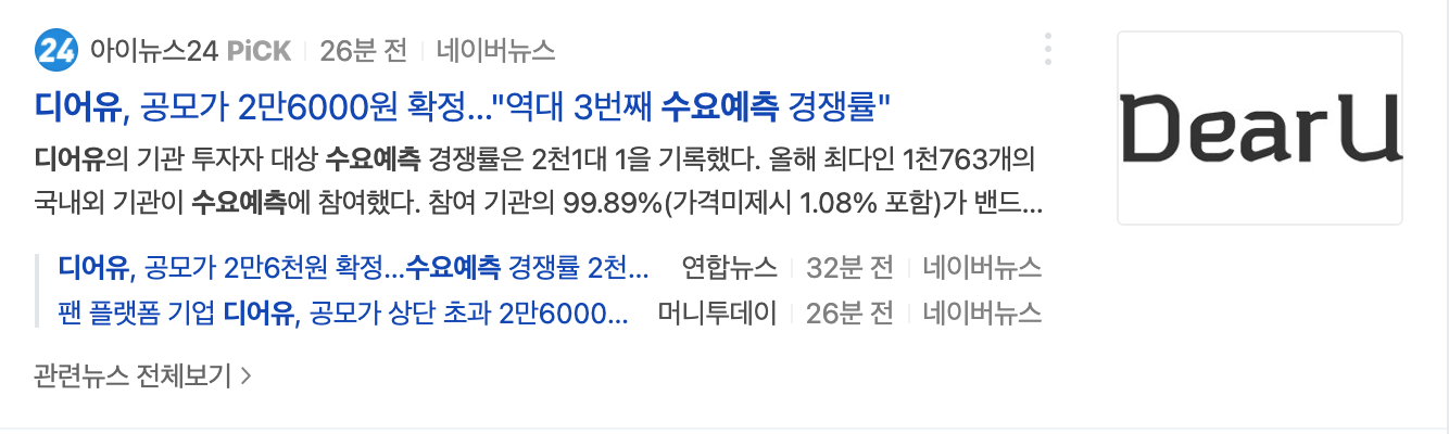 3. 디어유 확정 공모가액 : 26,000원 (디어유 균등배정을 최소청약증거금 130,000원)