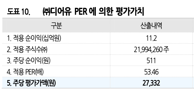 가) 디어유 유사기업 per 산출