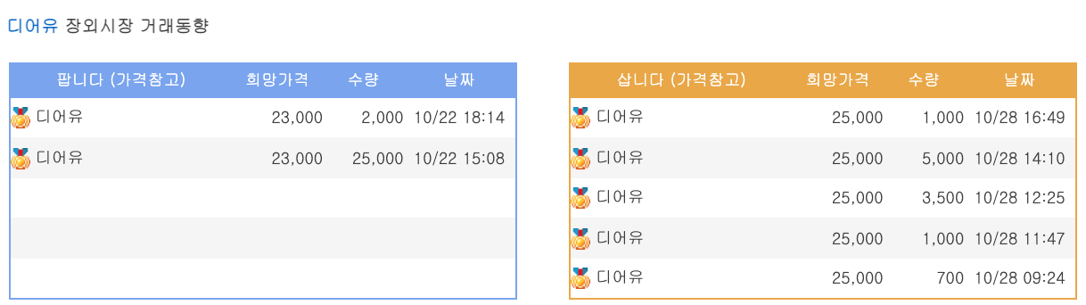 디어유 장외가는 매도자는 23,000원선 매수자는 25,000원선에서 거래되고 있다.