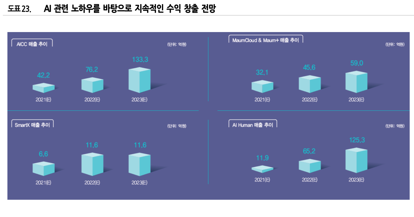 AICC, SmartX, maumCloud 등 사업부 에서 사용되는 기술을 융합하여 플랫폼화한 AI Human을 통한 신사업 진출은 긍정적임.