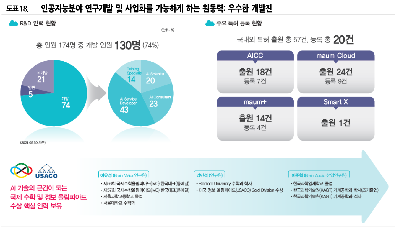 1. 음성인식, 얼굴인식, 자연어처리, 음성생성 등의 기술력을 보유, 다양한 AI 관련 사업 진출에 성공함.