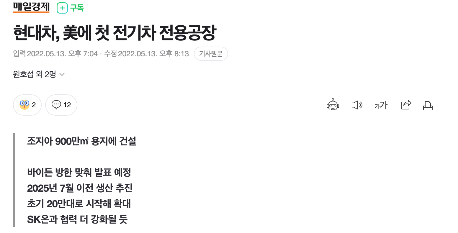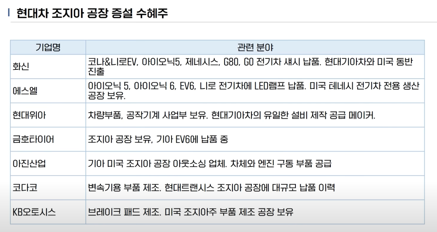 2. 바이든 방한 관련주 | 현대차 조지아 공장 증설 관련주 및 수혜주