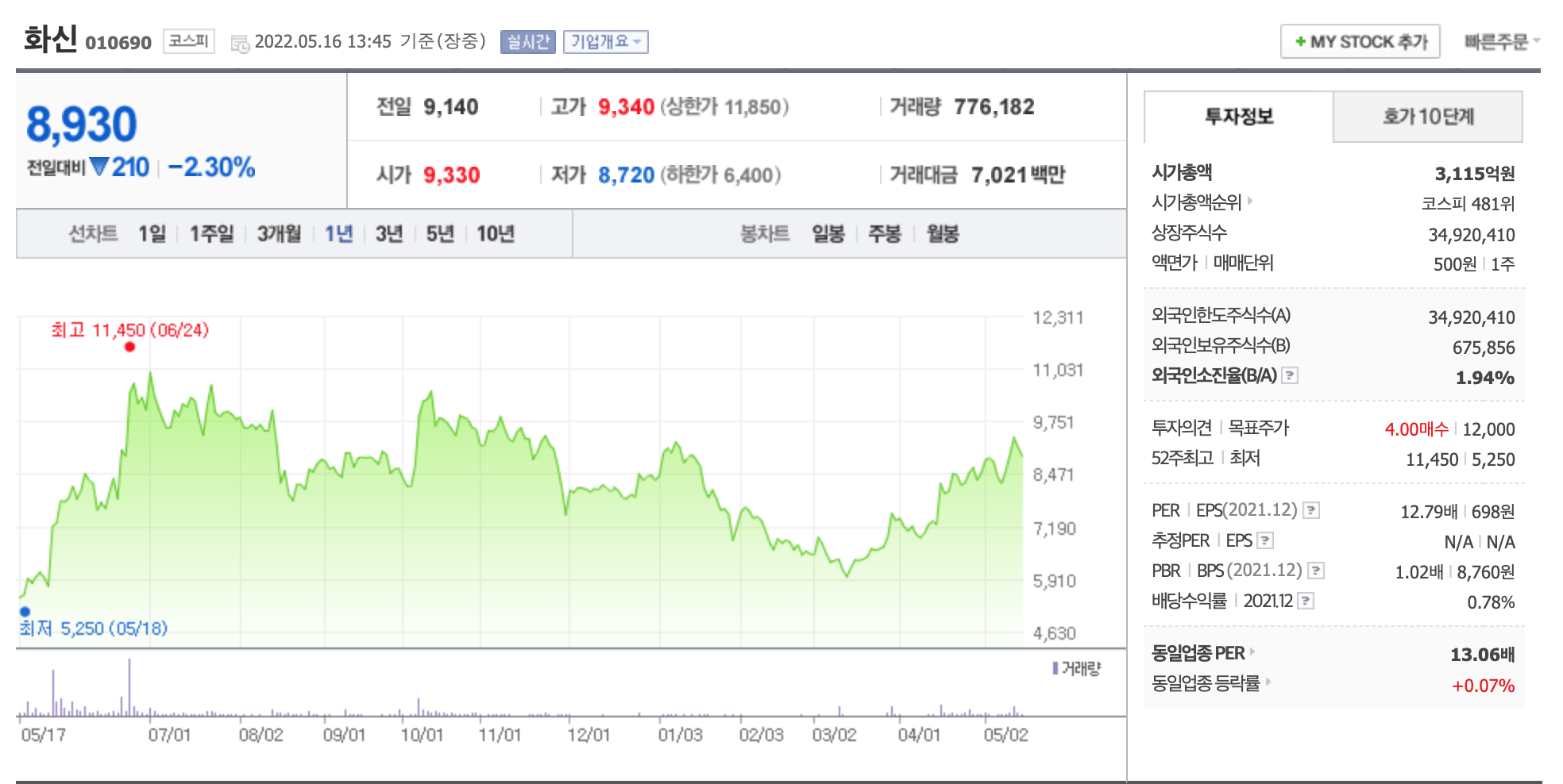 화신은 1975년 7월 1일에 설립되어 1994년 1월 14일에 상장함.