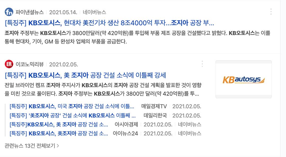 KB오토시스는 브레이크 패드를 제조하고 있고 미국 조지아주 부품 제조 공장을 보유하고 있어 바이든 방한시 수혜를 볼것으로 예상됨