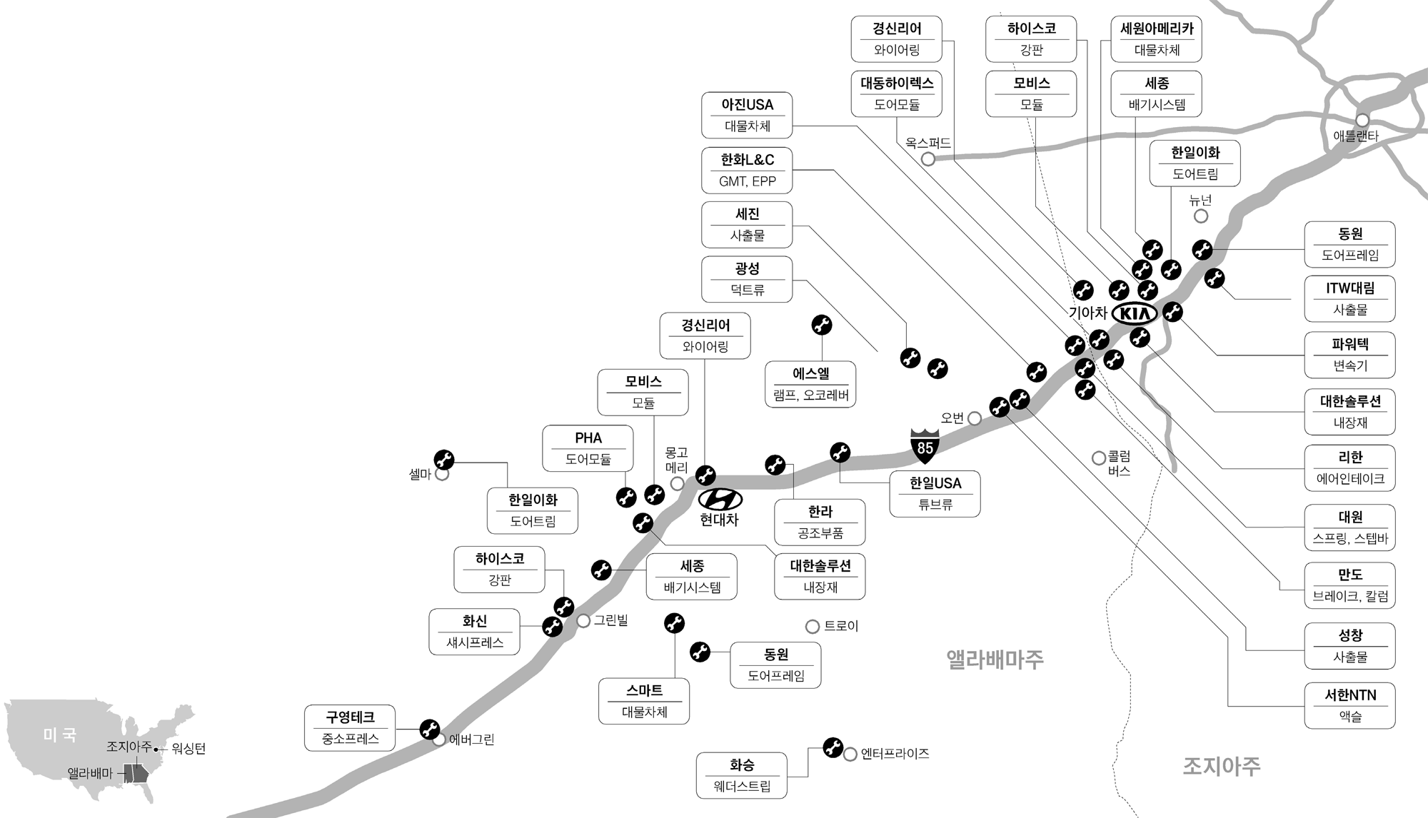 1. 바이든 방한에 따른 현대차 조지아 공장 밸류체인 지도