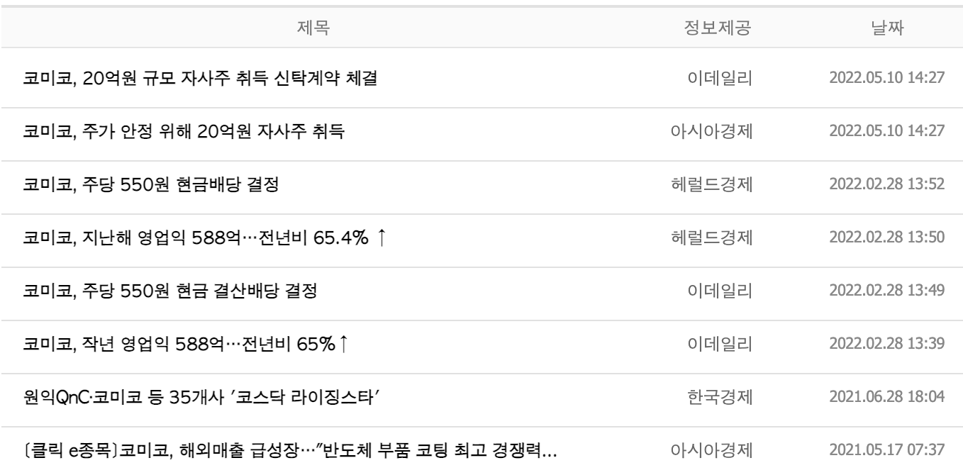 코미코는 2013년 8월 코미코의 정밀세정, 특수코팅 사업부문의 독립성과 전문성을 극대화하기 위하여 물적분할을 통해 신설된 회사임.