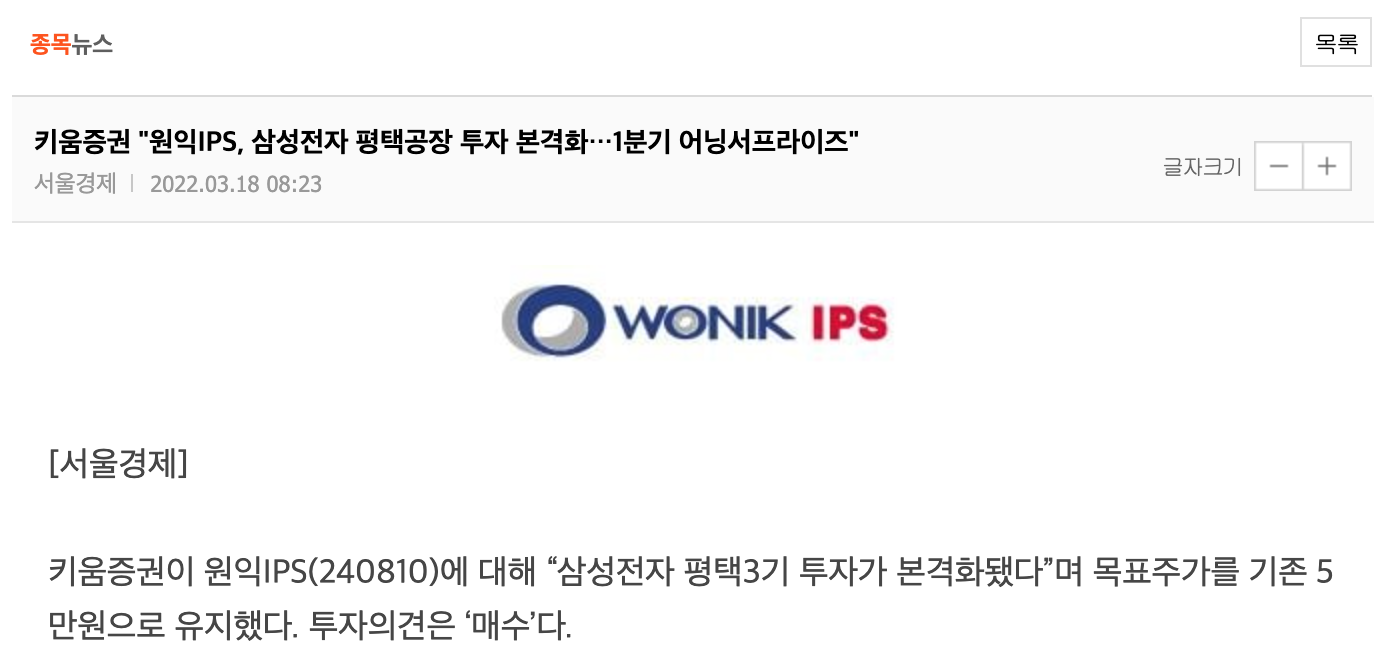 원익IPS는 반도체 증착, 식각 장비를 제조하고 있으며 미국 법인을 소유하고 있어 바이든 대통령이 한미정상회담에서 반도체 안건을 제시하거나 삼성전자 평택공장 방문시 수혜를 받을 가능성이 있어 보인다.