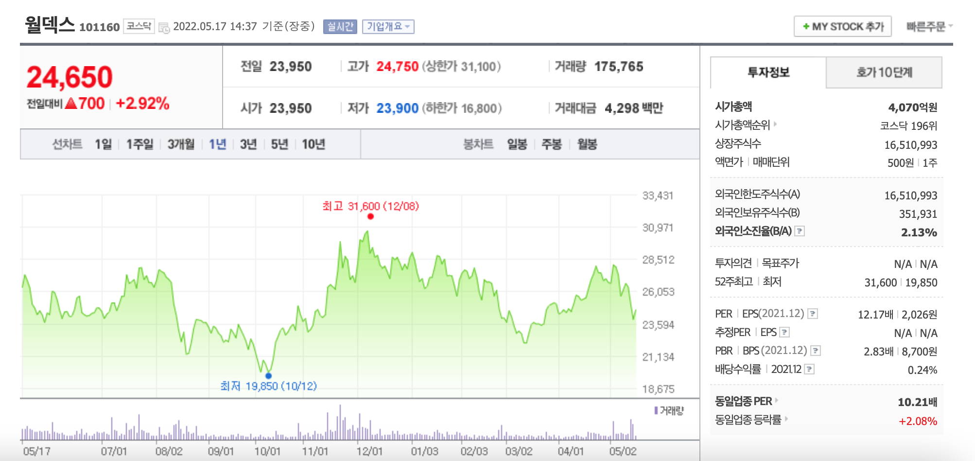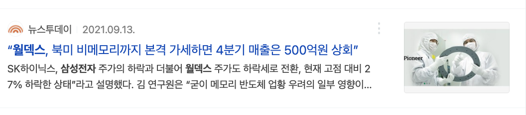 월덱스는 반도체 실리콘 세라믹 부품 제조를 하며 미국 자회사 WCQ를 통해 인텔 등과 거래 중에 있어 바이든 대통령이 한미정상회담에서 반도체 안건을 제시하거나 삼성전자 평택공장 방문시 수혜를 받을 가능성이 있어보인다.