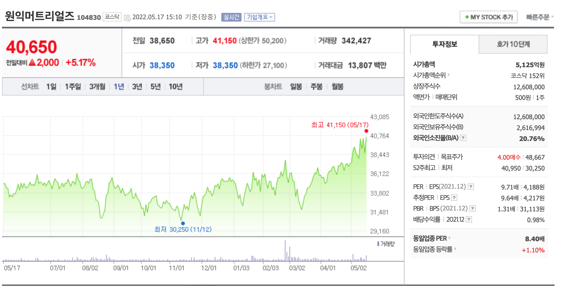 원익머트리얼즈는 반도체 특수가스 제조 업체로 미국 법인 소유하고 있어 바이든 대통령이 한미정상회담에서 반도체 안건을 제시하거나 삼성전자 평택공장 방문과 함께 삼성전자 공장 증설 투자시 수혜를 받을 가능성이 있어보인다.