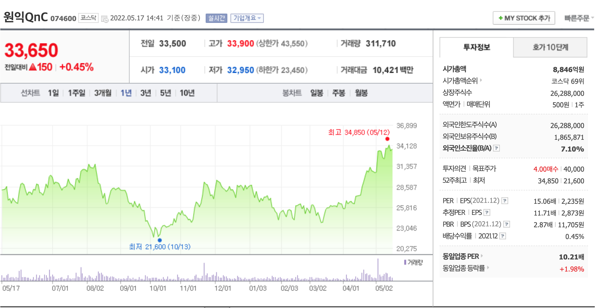 원익 QnC는 미국 법인을 통해 인텔, 마이크론과 거래중이라 바이든 대통령이 한미정상회담에서 반도체 안건을 제시하거나 삼성전자 평택공장 방문시 수혜를 받을 가능성이 있어보인다.