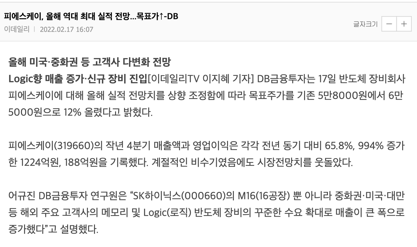 피에스케이 또한 미국 법인을 소유하고 있어 바이든 대통령이 한미정상회담에서 반도체 안건을 제시하거나 삼성전자 평택공장 방문시 수혜를 받을 가능성이 있어 보인다.