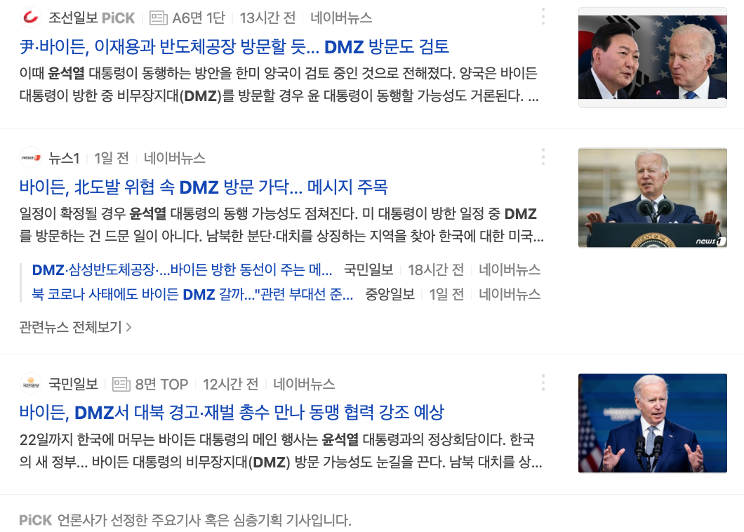 0. 바이든 대통령 방한 일정으로 DMZ 방문할 가능성