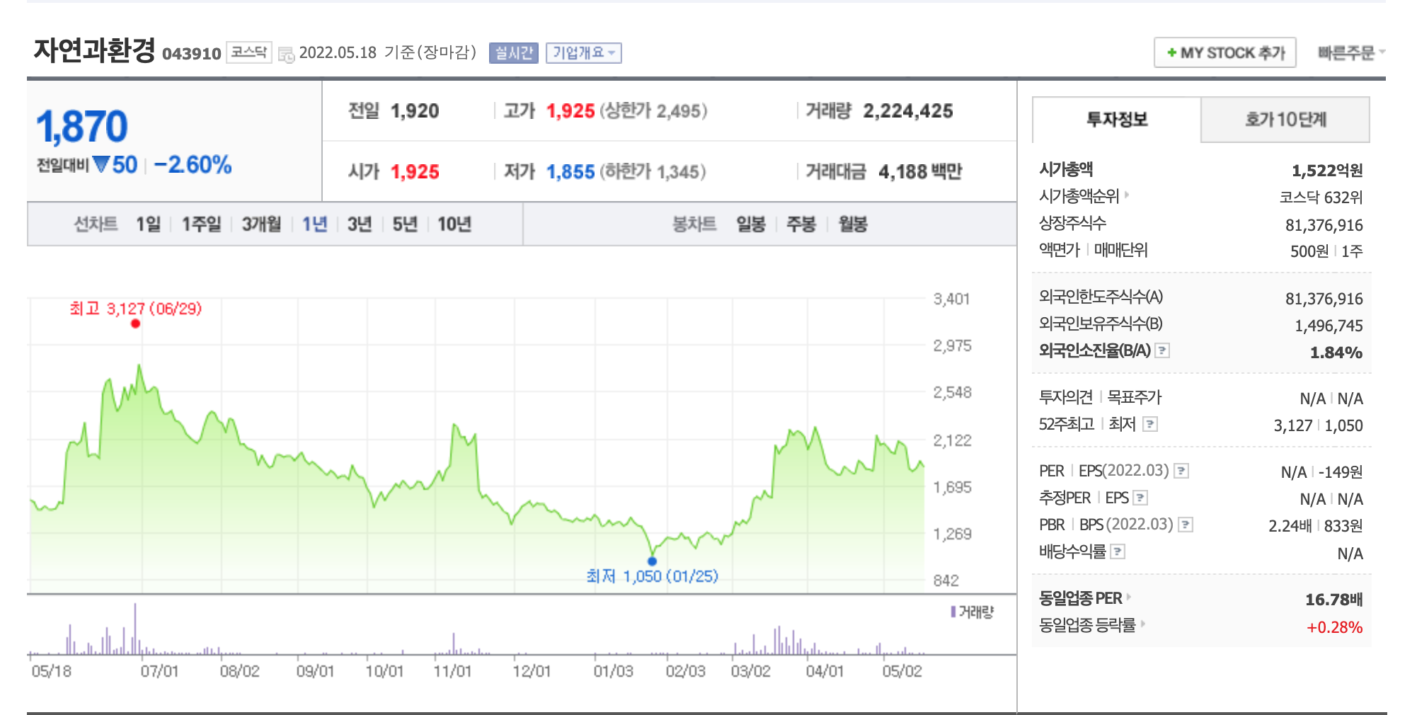자연과환경은 DMZ평화공원 조성에 관련주로 묶여 있는 종목으로 바이든 대통령이 DMZ 방문시 공원조성에 대한 기대감이 생길것으로 예상됨