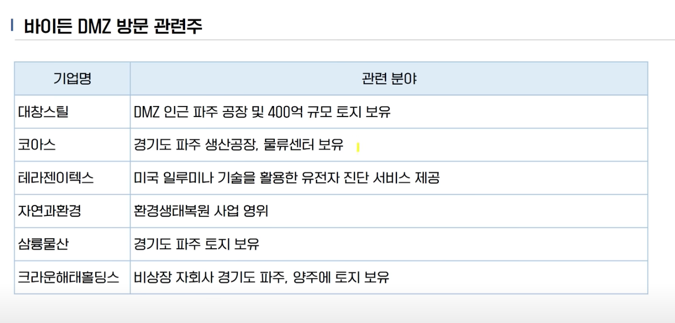 1. 바이든 방한시 DMZ 방문 관련주에 주목해야 하는 이유