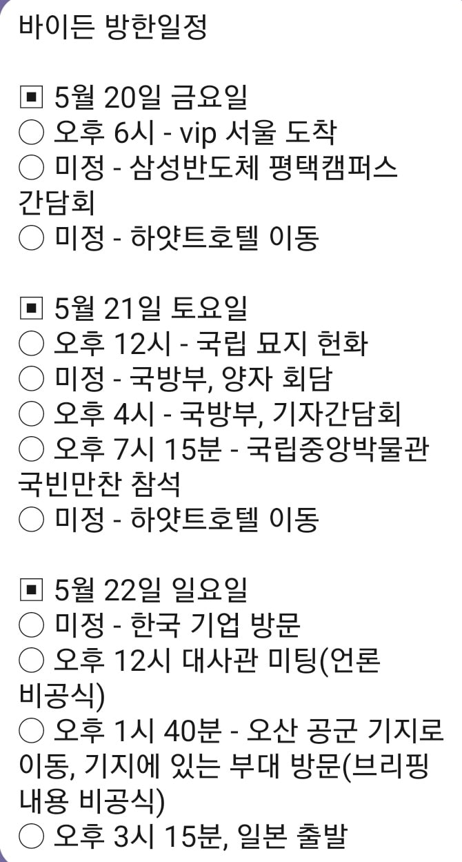 * 바이든 방한일정 (한미정상회담 일정)*