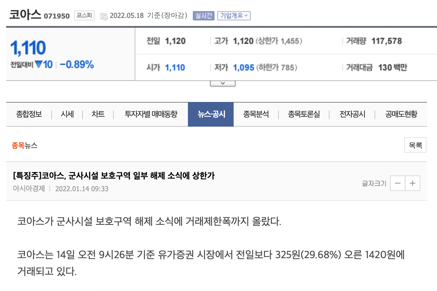 코아스는 경기도 파주 생산공장과 물류센터를 보유하고 있어 바이든 대통령 DMZ 방문시 수혜주로 분류될 가능성이 높아보인다.