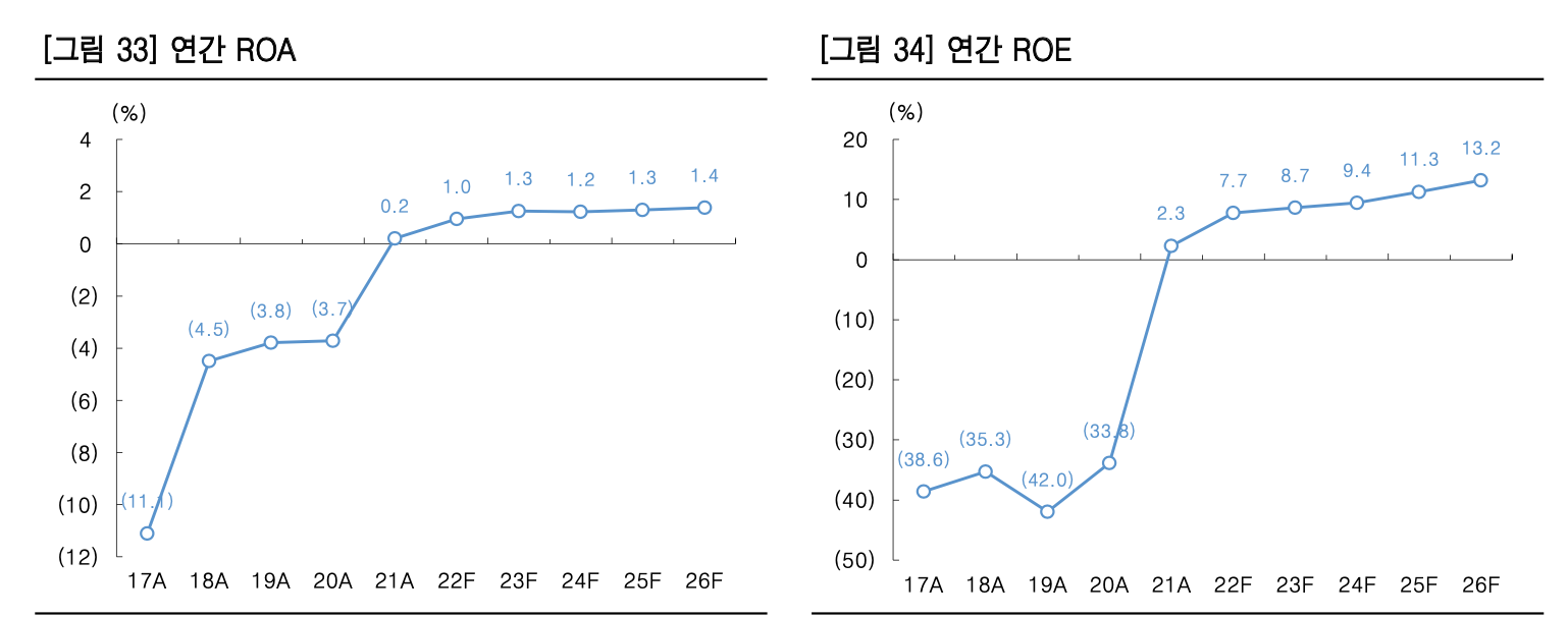 실적은 개선될 일만 남았다. 대출 확대와 NIM 상승 덕분에 2022년 이자이익은 3,681억원으로 전년대비 86% 증가할 전망이다. 영업 및 재무 레버리지 효과까지 반영해 ROE는 2021년 2.3%에서 2022년 7.7%로 개선되고 중장기적으로는 10%대 중반 수익성도 예상된다.