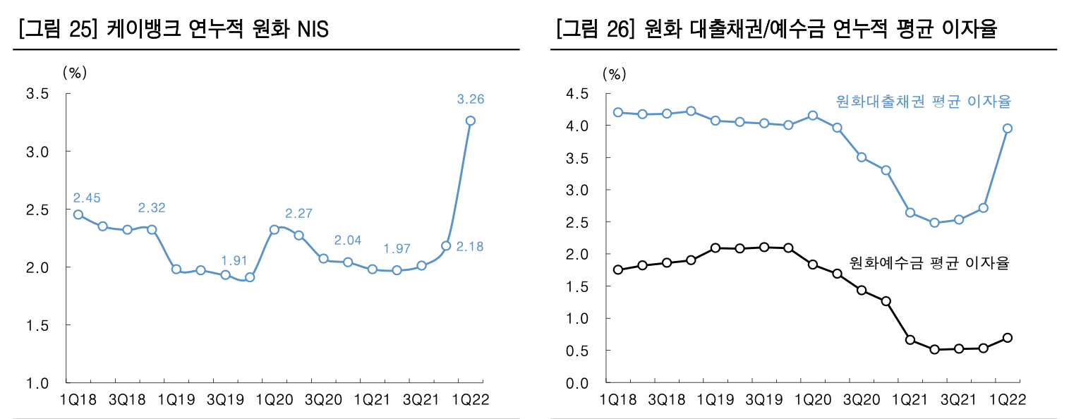 업비트가 끝이 아니다. 수신 상품 경쟁력 제고와 예금 프로모션 강화로 유입된 고객을 락인하는데 성공했다. 업비트 고객예치금을 제외하더라도 2022년 1분기 원 예수금은 5.7조원으로 2020년 말 2.7조원 대비 112% 증가했다. 마찬가지로 업비트 예치금을 제외하더라도 케이뱅크의 저원가성 수신 비중은 2022년 1분기 49%로 은행업 평균인 45%를 상회한다. 예금 경쟁력을 확인할 수 있는 대목이다.