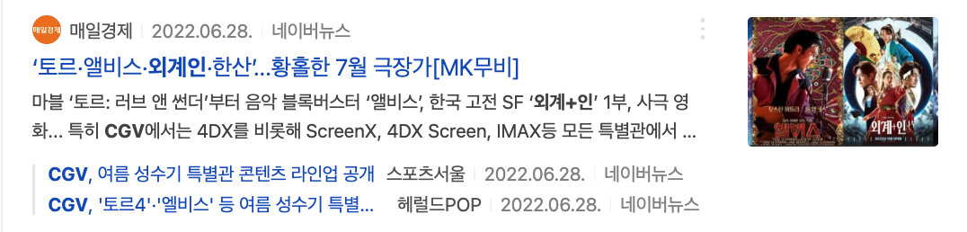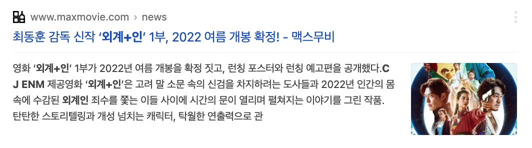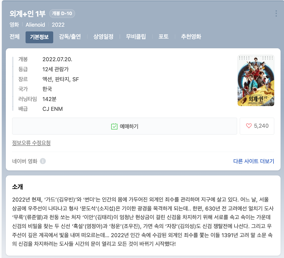 외계+인 개봉 : 2022년 7월 20일(수요일)