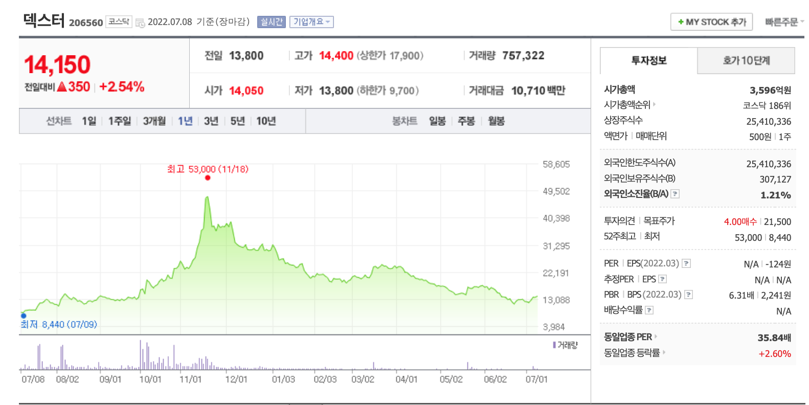 덱스터 주가 PBR 밴드는 작년 메타버스 붐에 힘입어 12.7배까지 갔었지만 현재는 5.4 배로 PBR 밴드 중단까지 내려와 투자하기 매력적인 구간으로 판단된다. 덱스터 실적의 경우 올해 흑자전환할것으로 예상돼 주가 흐름에 긍정적으로 작용할것으로 예상된다.