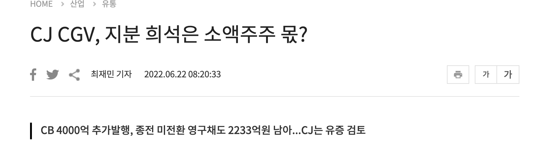 그럼에도 CJ CGV 장기전망을 좋게 보기 어려운 이유는 CGV는 부채 탕감을 위해 유상증자와 30년만기 전환사채를 발행한 상황이고 2024년까지 적자가 예상되고 있어 CGV 신용 등급 상향과 코스피 200 재진입에 어려움이 있을것으로 생각된다.