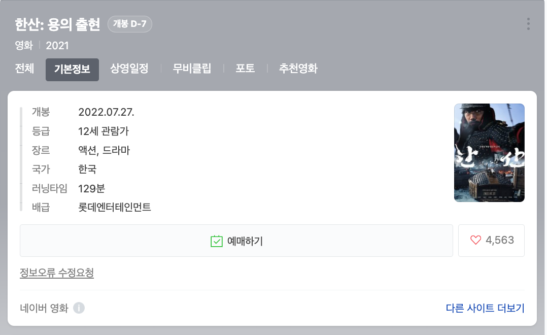한산 용의출현 개봉 : 2022년 7월 27일(수요일)