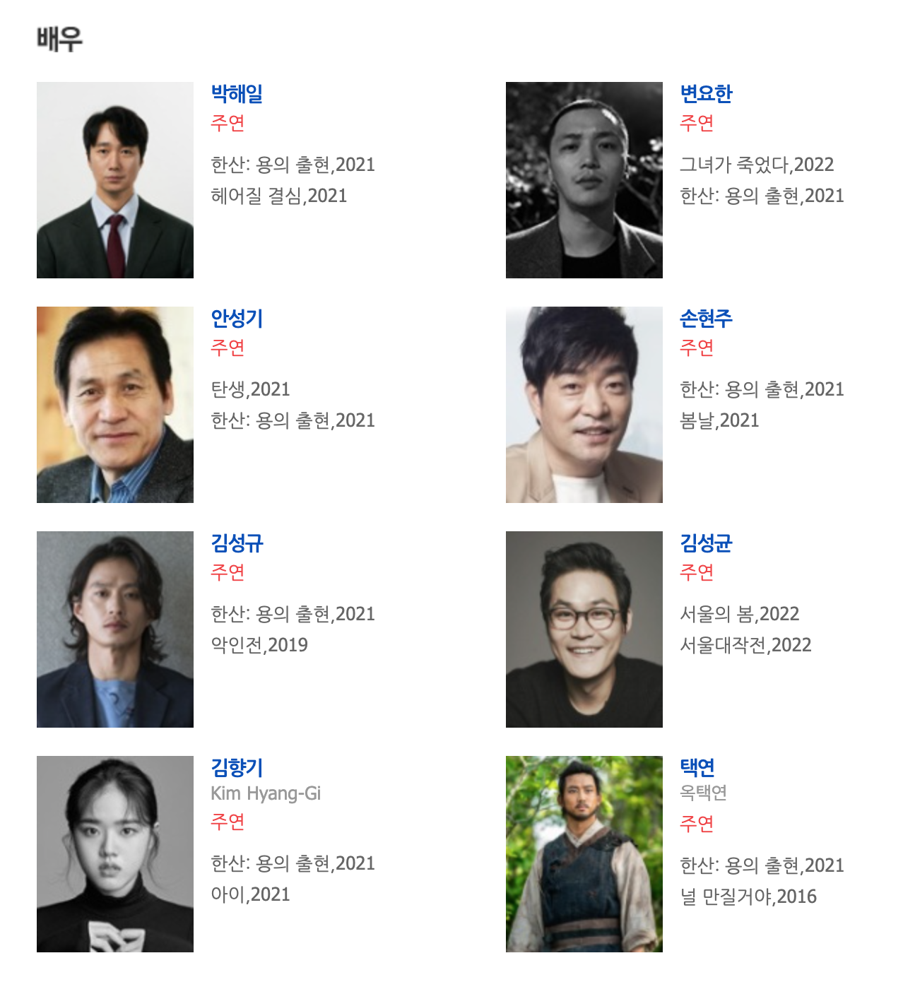 한산 용의 출현 주요 배우 출연진