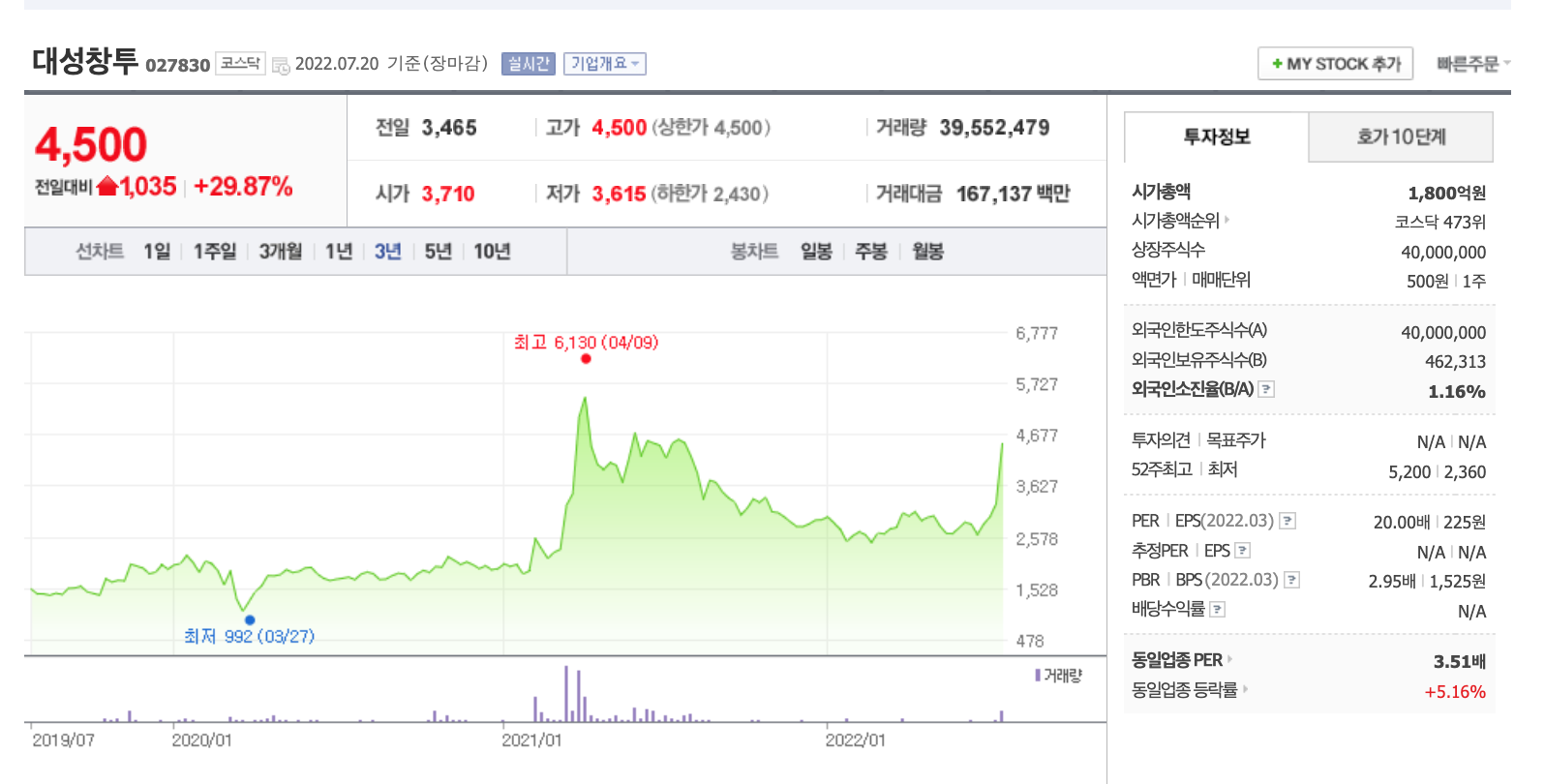 대성창투의 경우 시가총액도 1,800억대로 작고 특별히 시장에 대성창투와 비견될 만한 한산 수혜주가 없는 만큼 대성창투가 대장주의 역할을 할 것으로 예상된다.