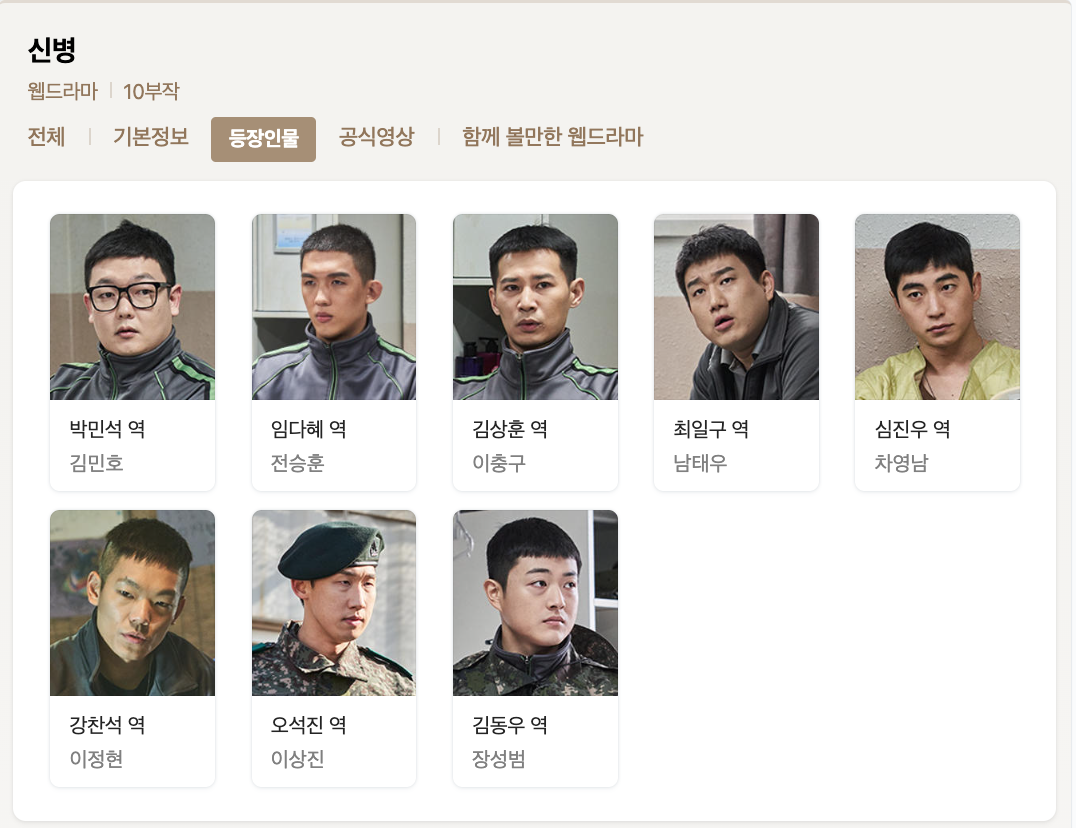 채널 ENA에서 방영될 다음 기대작인 신병은 군대 드라마로 316만의 구독자를 보유한 장삐주라는 크리에이어터의 원작 작품을 드라마화한 작품이다.