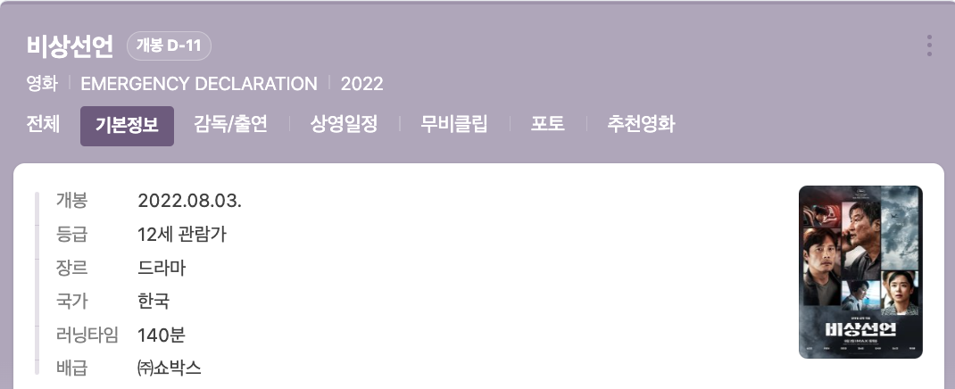 비상선언 개봉일 : 2022년 8월 03일(수요일)