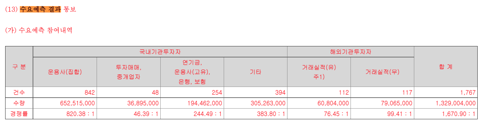 새빗켐 공모주는 의무보유확약 비율도 37.71%를 기록했다. 기관투자자들도 새빗켐 수요예측에서 최대한 주식를 배정 받기 위해 의무 보유 확약을 하면서 기관투자자의 의무보유확약 비율이 37.71%로 타 IPO대비 20% 높게 결정되어 새빗켐 상장 당일 최종 유통 가능 물량은 더욱 줄어들 것으로 예상된다. 새빗켐 수요예측 결과를 종합하여 새빗켐 주가 흐름을 전망했을때 새빗켐 공모주 청약을 통해 수익을 얻을 가능성이 높아 보인다.