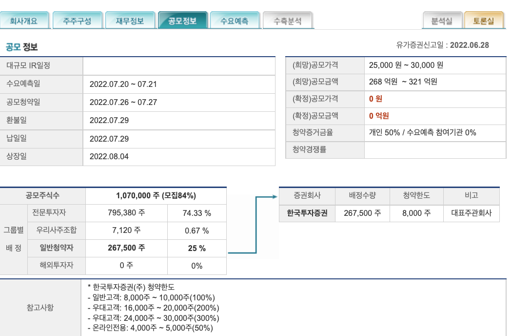 일반 고객 기준 최고 청약한도는 8,000주 ~ 10,000주 이며 우대 고객의 경우 16,000주 ~ 20,000주 까지 청약이 가능하다.