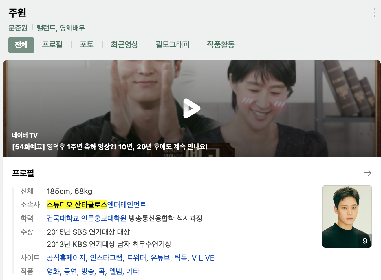 배우 주원의 소속사인 스튜디오산타클로스는 연예 매니지먼트 사업을 중심으로 영화, 드라마, 드라마OST 사업을 진행하고 있음. 전속계약 49명, 에이전트 8명 등 총 57명의 아티스트와 계약 중에 있다.