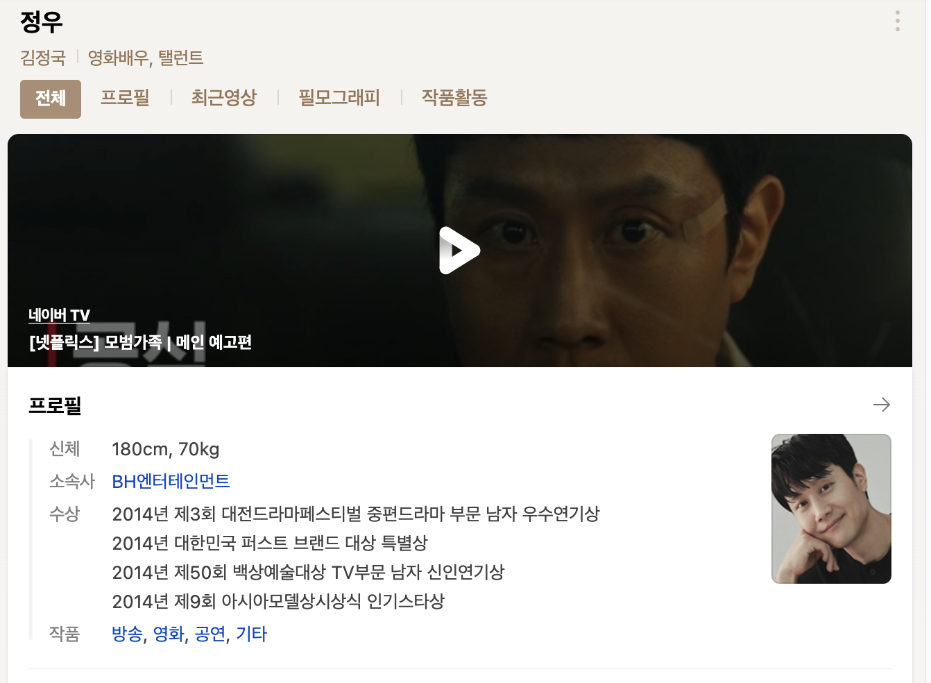 주인공인 배우 정우의 소속사는 BH엔터테인먼트로 회사 지분 전부를 카카오엔터테인먼트가 보유하고 있다.