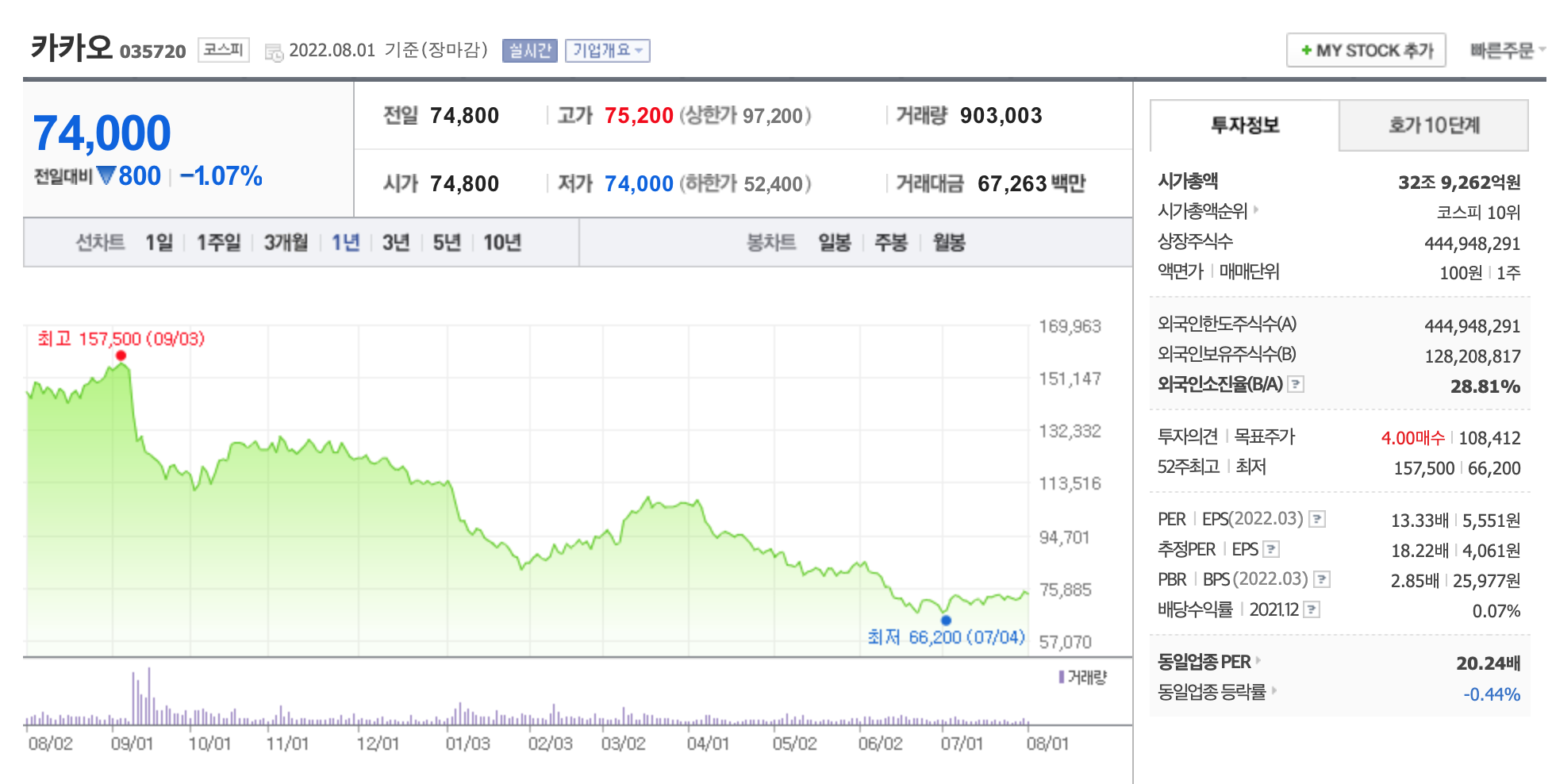 카카오가 카카오엔터테인먼트 지분을 73.6%를 소유하고 있는만큼 카카오 또한 모범가족 관련주로 분류하였으나 시총이 33조에 달하는 초대형 기업이기에 모범가족 흥행이 성공하더라도 카카오 몸집에 비하면 작은 이슈이기에 주가 상승은 어려울것으로 예상된다.