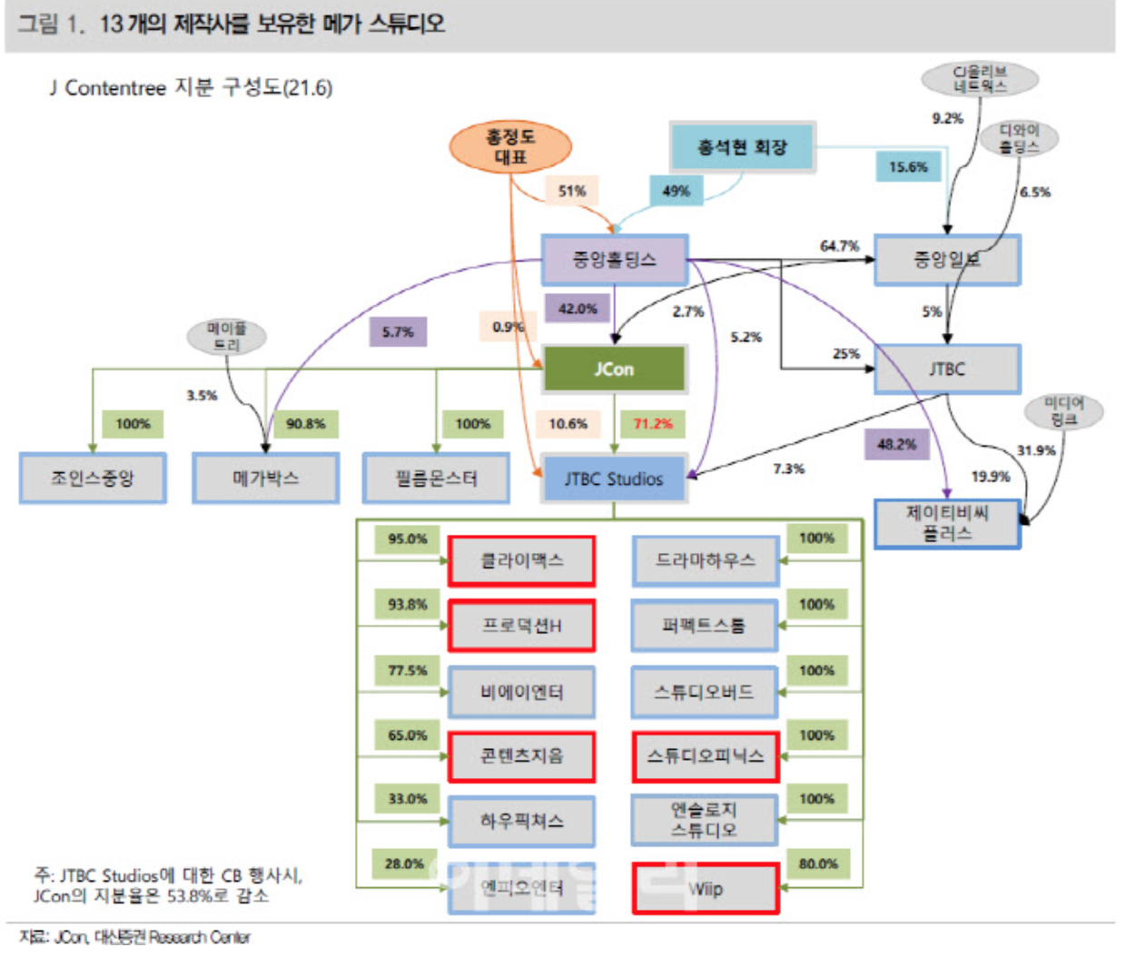 모범가족 제작사인 프로덕션H는 비상장사로 콘텐트리중앙(전신 제이콘텐트리)이 JTBC Studios를 통해 지분을 93.8% 보유하여 간접 지배하고 있다.