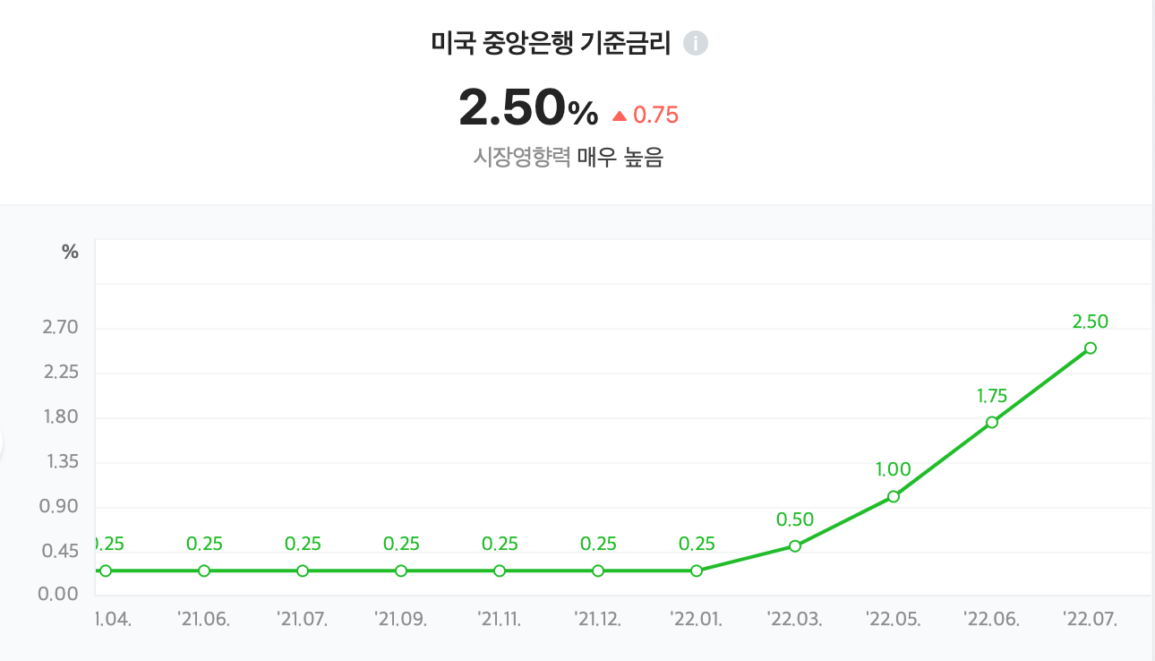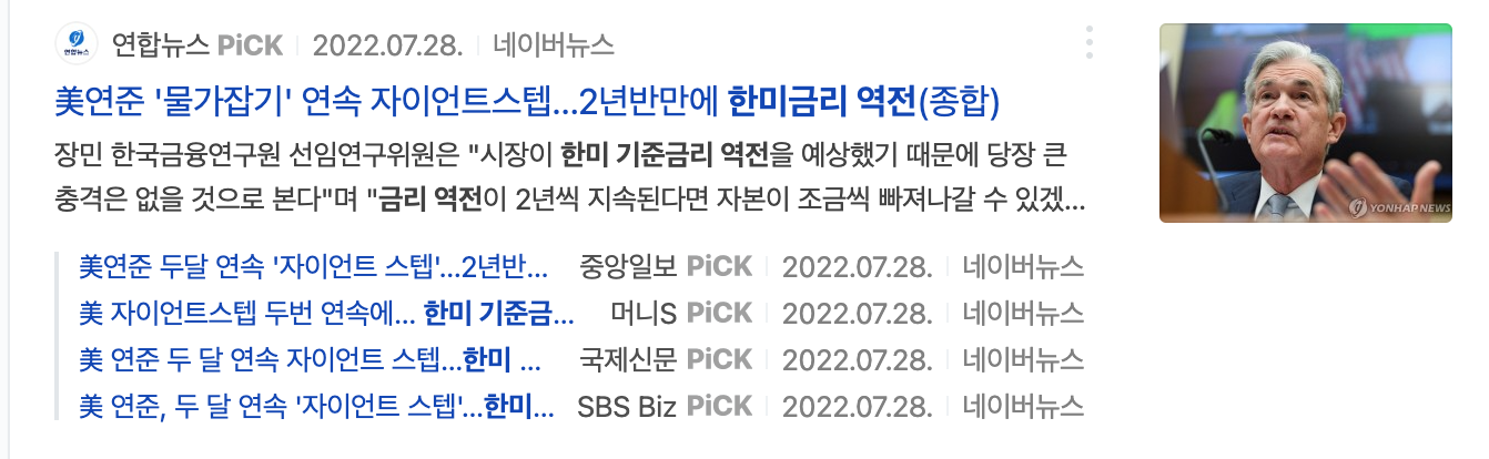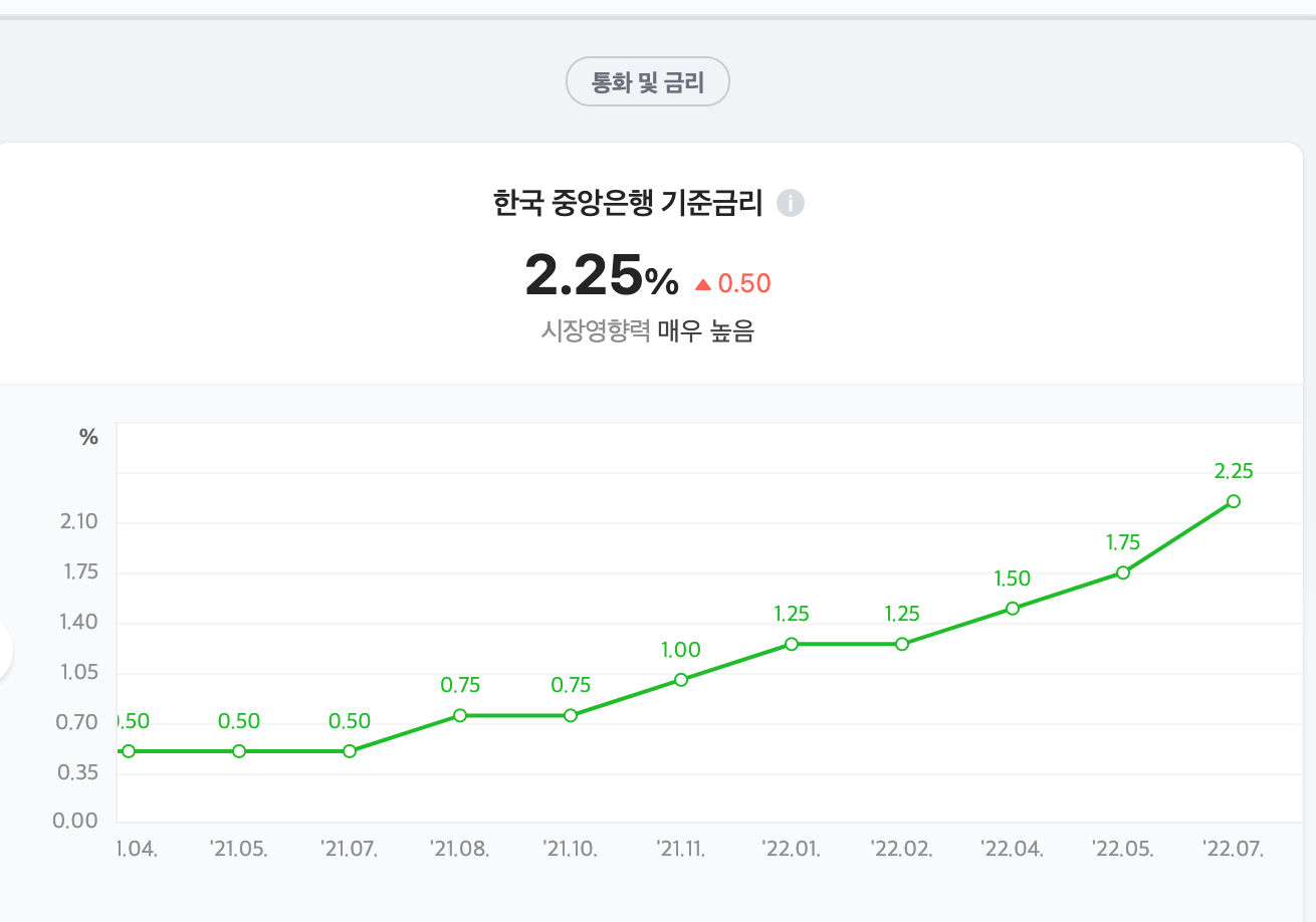 한미 기준금리 역전으로 환율 폭등과 원화자산의 투자 매력도가 낮아져 상대적으로 달러를 배당 받을 수 있는 자산에 대한 알파가 높아진 상황이다.