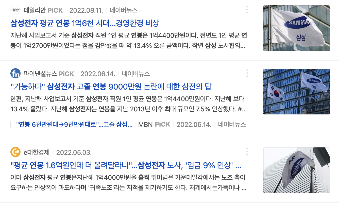 현재에도 삼성전자 반도체 사업부문의 연봉은 높은 수준이긴 하지만 증권사의 경우 상반기(하반기 제외)에만 억대 연봉이 넘어가고 네이버 두나무 카카오 당근마켓 등도 억대연봉을 넘어서 삼성전자에서 다양한 회사로 MZ세대 인재들이 파편화되고 있다.