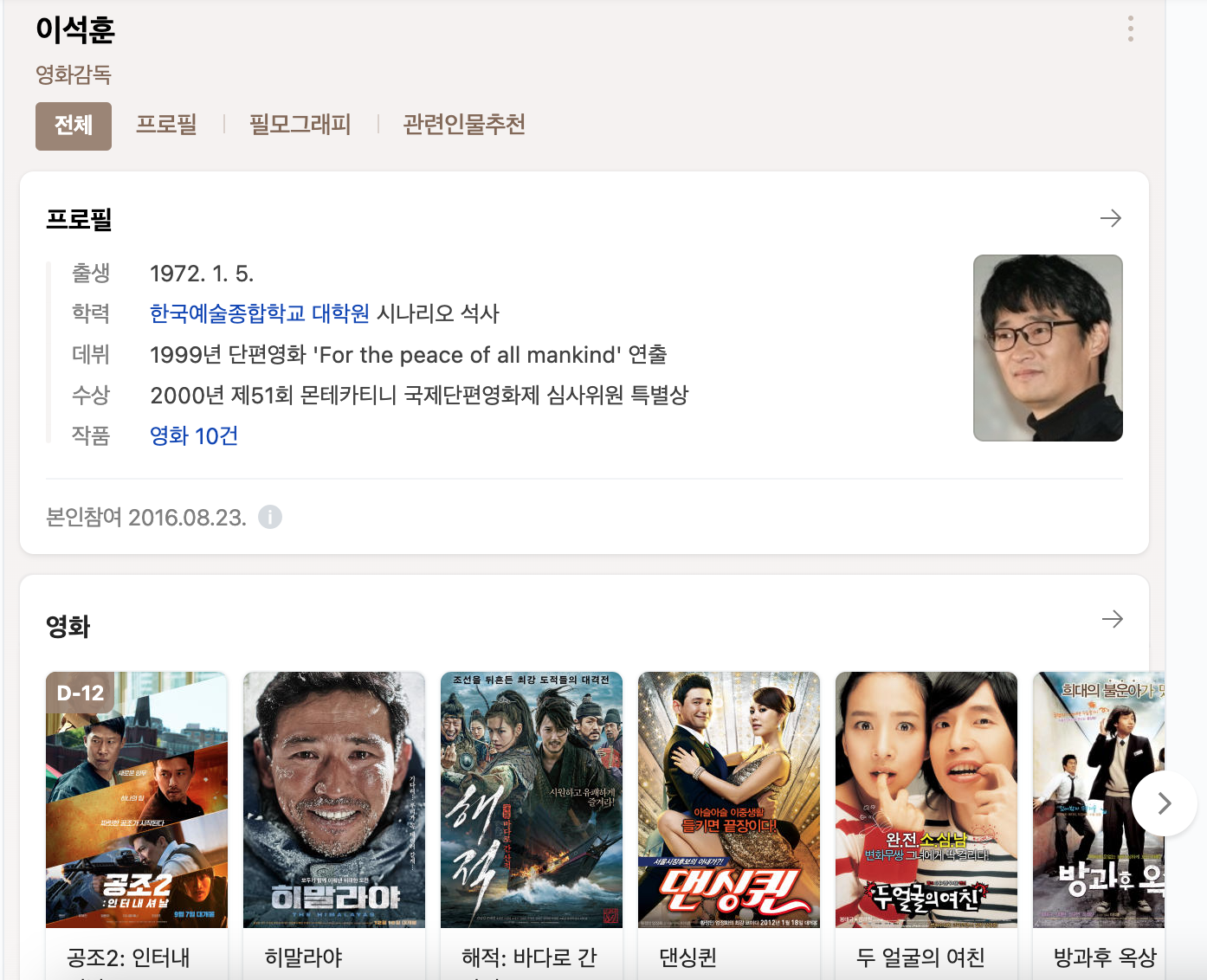1) 영화 공조2 인터내셔날 감독 : 이석훈