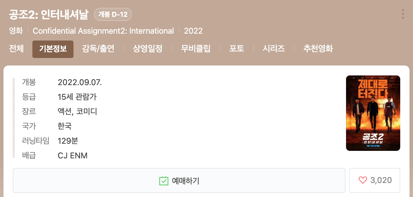 영화 공조2: 인터내셔날 개봉일 : 2022년 09월 07일(수요일)