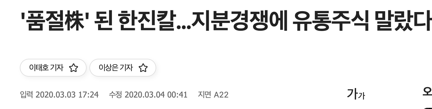 개인적으로 고려아연 지분경쟁에 특히나 관심이 가는 이유는 과거 한진칼 지분을 놓고 조원 태회장과 조현아 전 부사장의 지분경쟁으로 지주사였던 한진칼의 주가가 3개월만에 130% 가까이 오른 사례가 있기 때문이다.