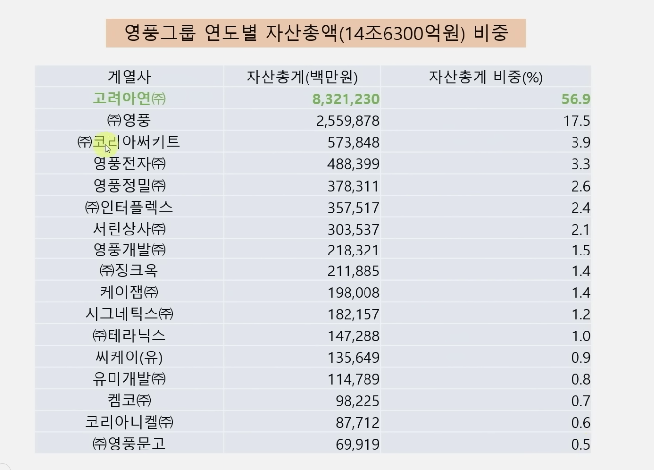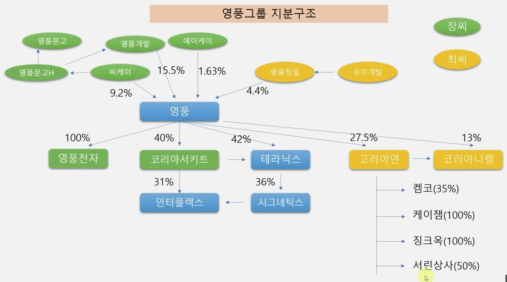 자사주(최씨가 이사회 장악): 6.04%