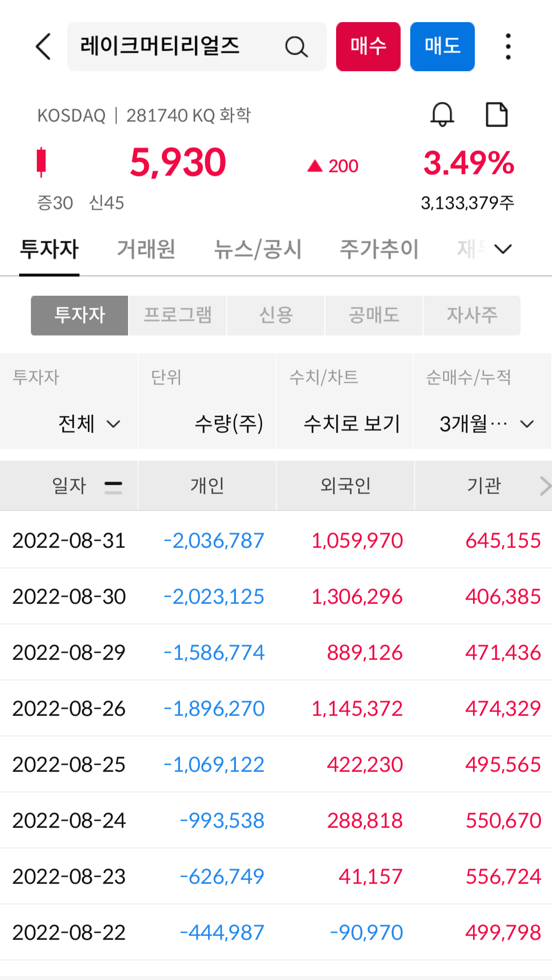 레이크머티리얼즈는 반도체 태양광 LED 등 다양한 소재 분야에서 두각을 나타내고 있어 최근 일주일간 외국인과 기관의 공격적인 매수세가 들어오고 있다. 역금융장세에도 불구하고 레이크머티리얼즈는 올해 영업이익이 작년대비 81% 증가할것으로 예상되는 가운데 2023년에도 30% 정도 이익 성장이 예상되고 있다.