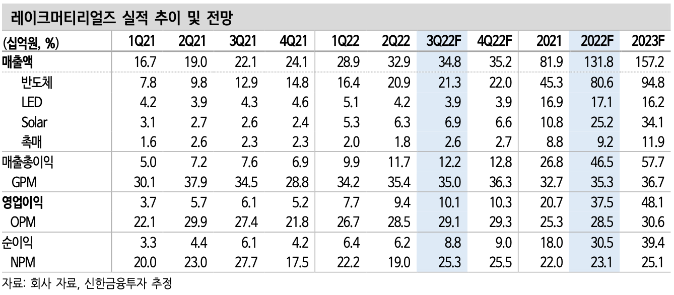 출처 : 신한금융투자, 가치투자클럽, 레이크머티리얼즈