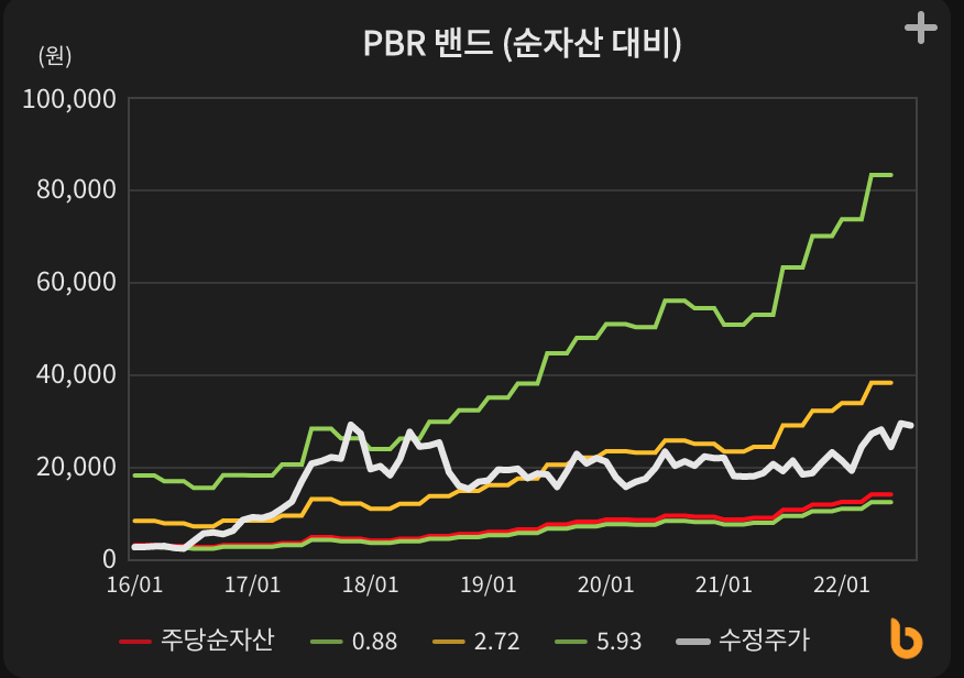 올해들어 비에이치 주가는 35.42% 정도 상승했으나 PBR 대비 현 주가는 역사적 고점과 10%정도 차이가 있는 상황