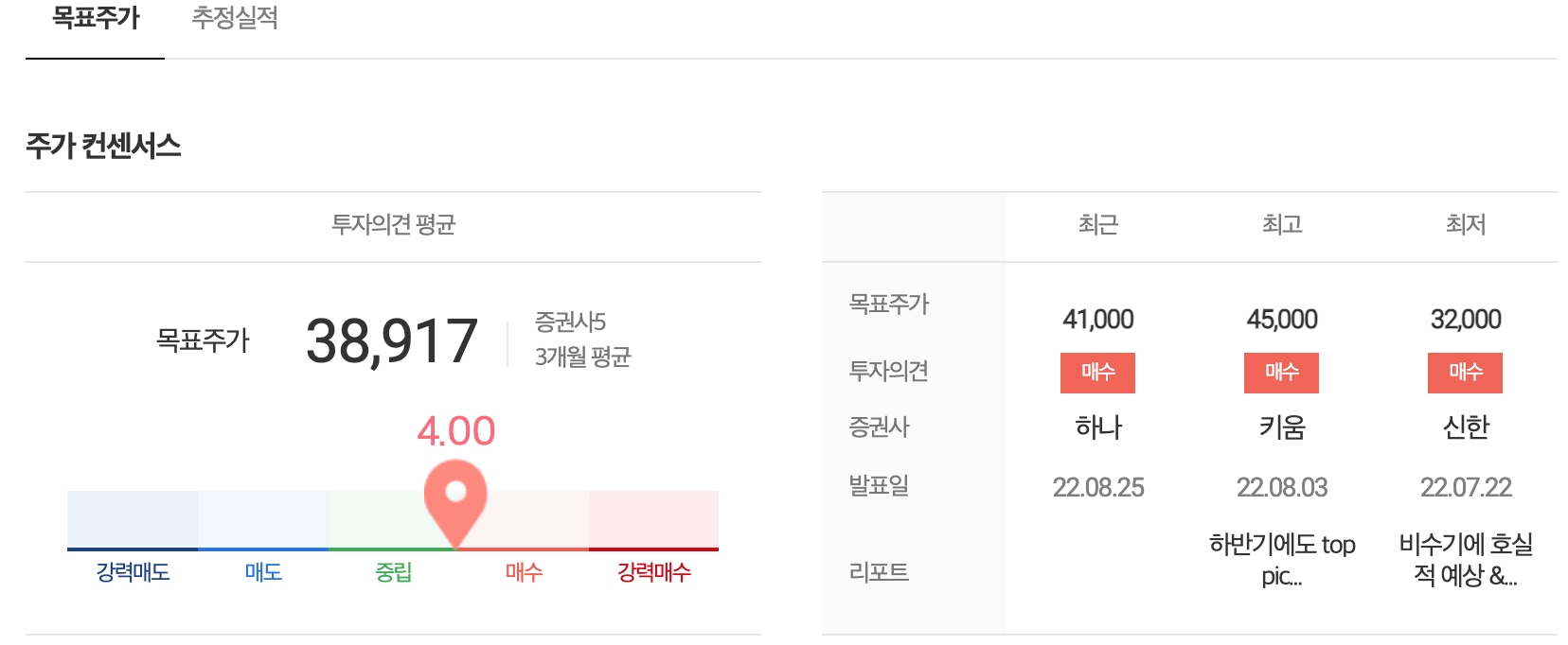 기관에서 제시한 비에이치의 평균 목표주가는 38,917원이고 최고가는 45,000원 최저가는 32,000원이다.